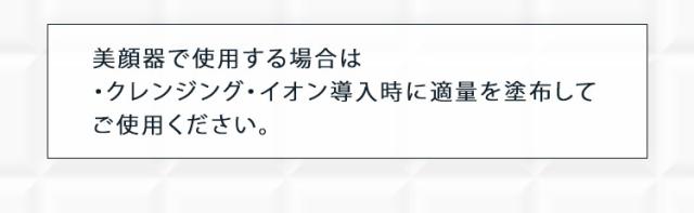 また、美顔器でのイオン導入・導出(クレンジング)でもご使用いただけるように適した処方に仕上げました。