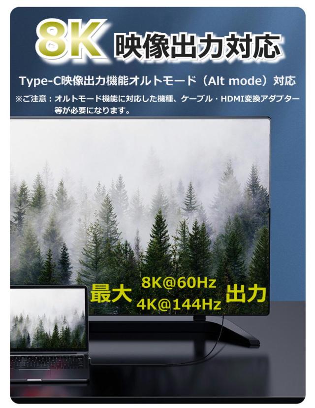 また、Type-C映像出力ケーブルと併用可能なので、 本製品をつけていても綺麗な8K映像出力も可能です!