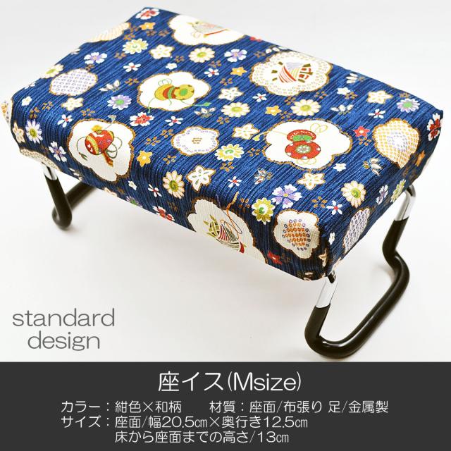 座イス Mサイズ 011 紺×和柄 座椅子 折りたたみ式 お仏壇用 正座イス