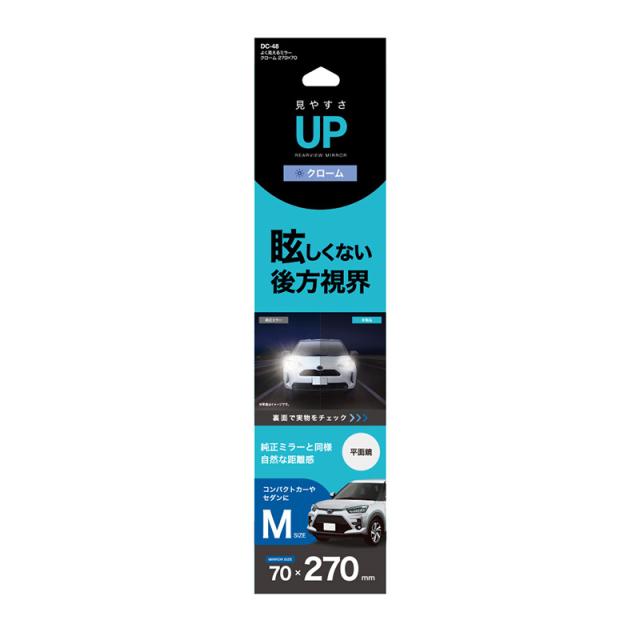 ヤック/YAC ルームミラー よく見えるミラー クローム 平面鏡 M 70×270mm 広後方視界 コンパクトカー・セダン等に DC-48