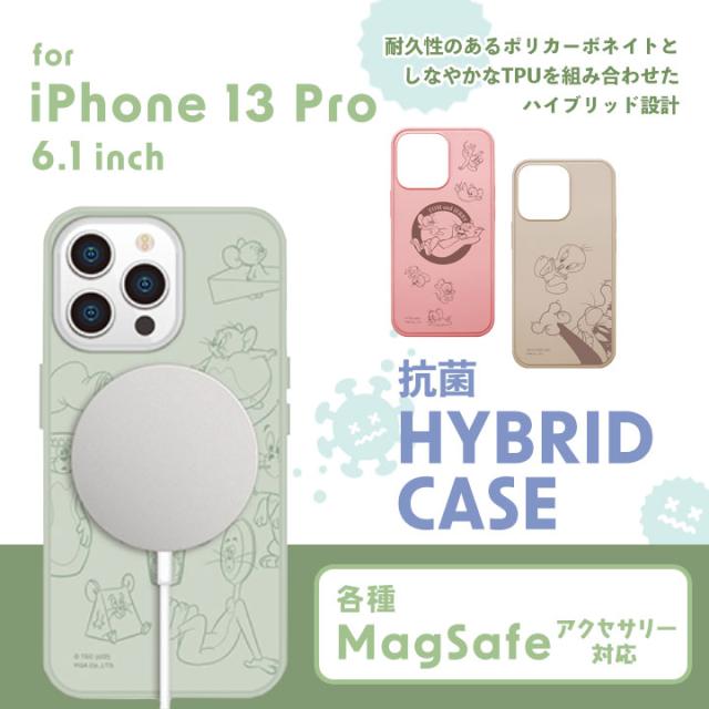 iPhone13Pro 6.1インチ MagSafe対応 抗菌ハイブリッドケース アイフォン13プロ 耐衝撃 衝撃緩衝 SIAA トムとジェリー グリーン ピンク ルーニーテューンズ トゥイーティー かわいい おしゃれ メール便送料無料