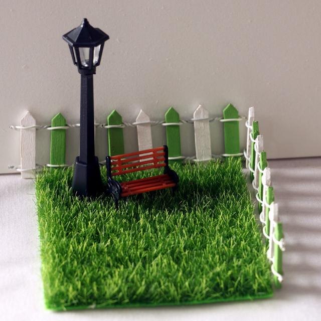 ミニチュア 雑貨 ガーデンセット ベンチ 椅子 芝生 電灯 1/12 材料 和風 キット ホビー 手芸 趣味 ドールハウス インテリア おもちゃ 20014
