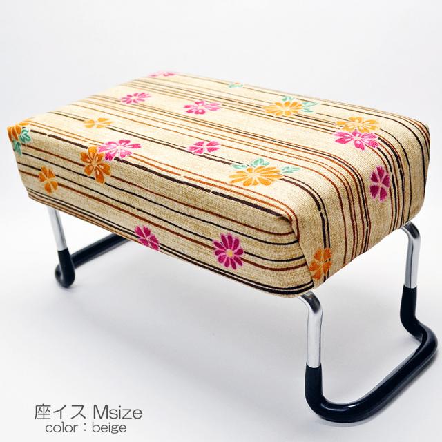 座イス Mサイズ 018 ベージュ×花柄 座椅子 折りたたみ式 お仏壇用 正座イス