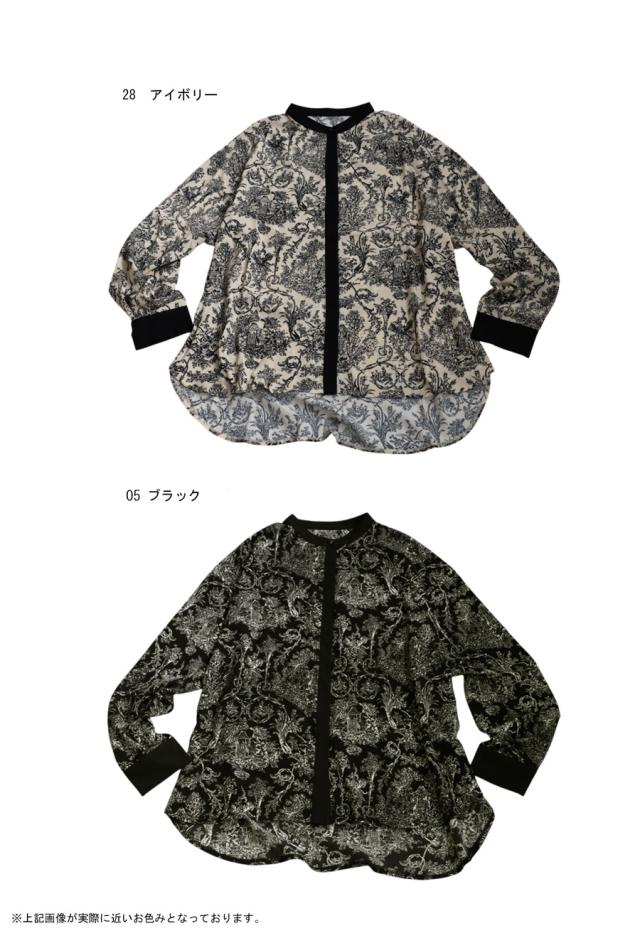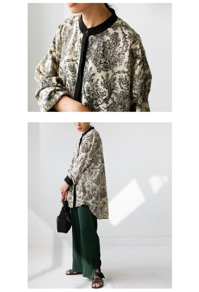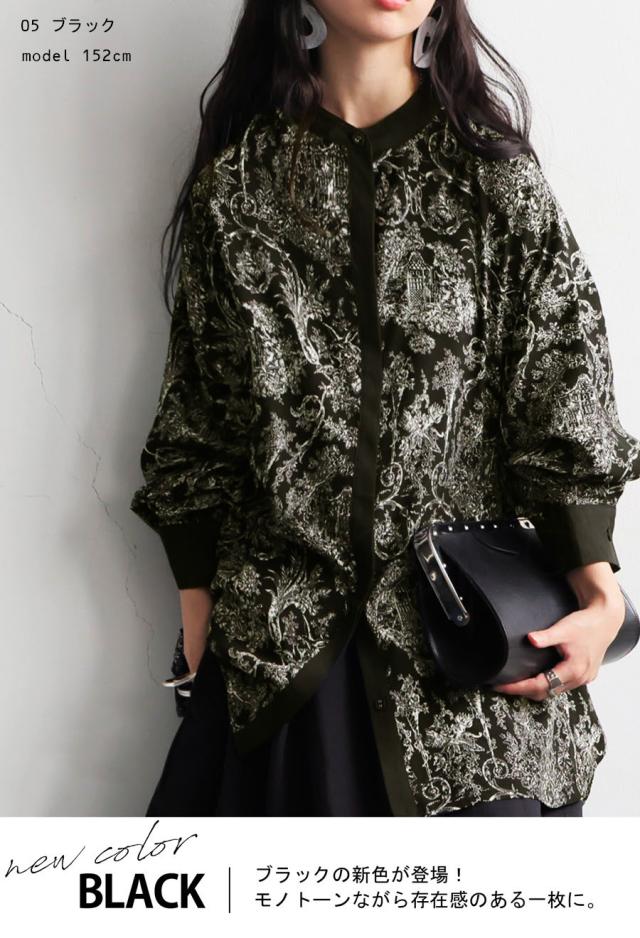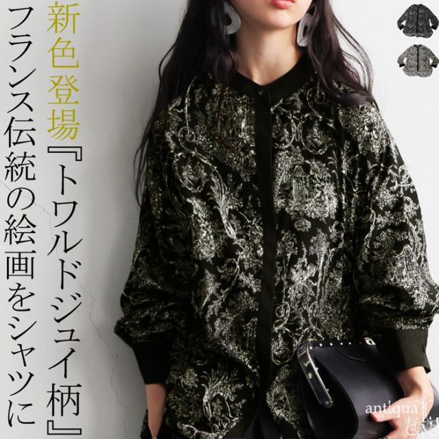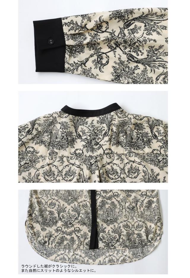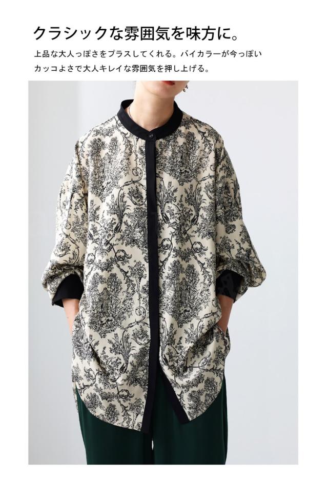 今着たい!ポイント10%★ 23日0時〜26日10時 トワルドジュイ柄 シャツ レディース 長袖 バンドカラー・再入荷 (100)メール便可
