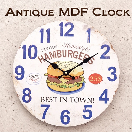【壁掛時計】アンティークMDFクロック Best HAMBURGER in Town★