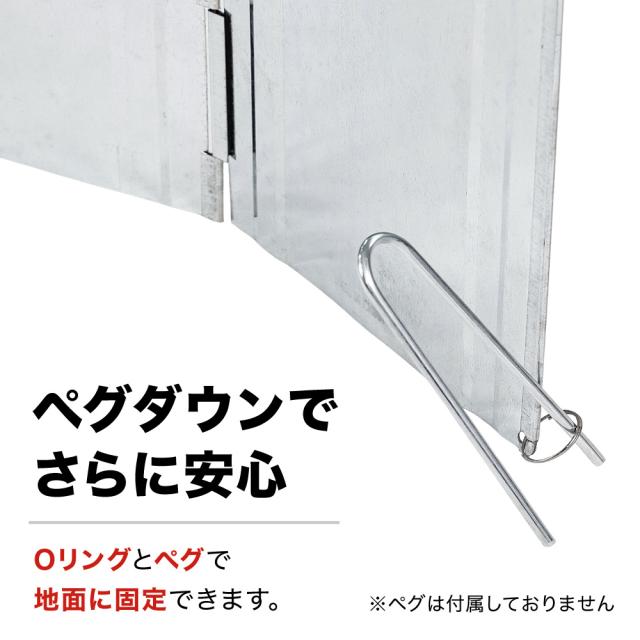 大型風防板(大型反射板)でストーブ、バーナー、焚き火から出る輻射熱を守り、