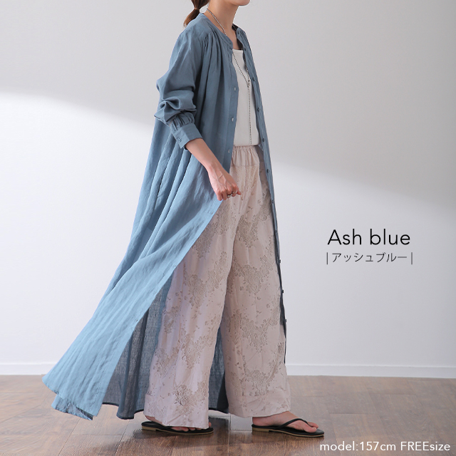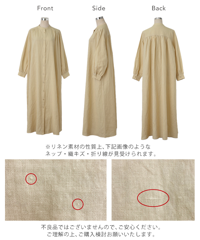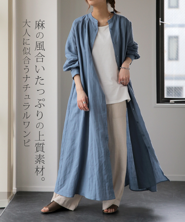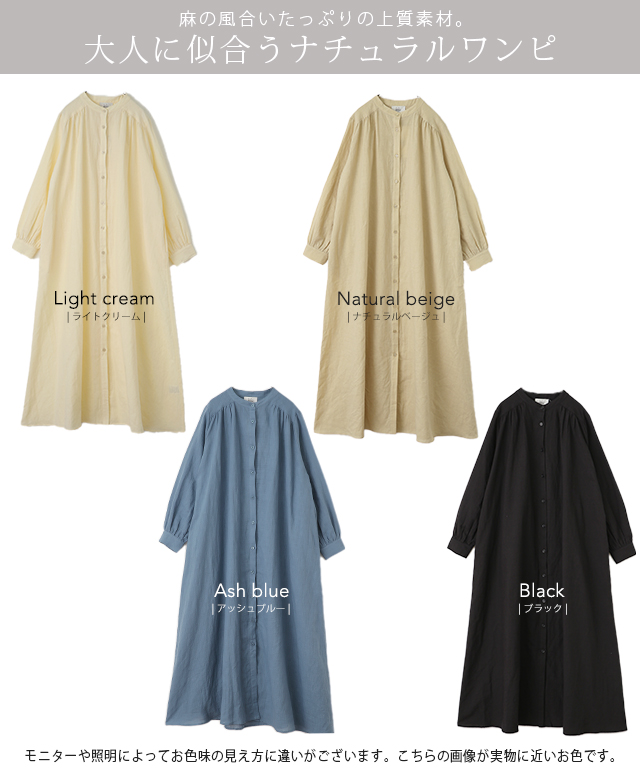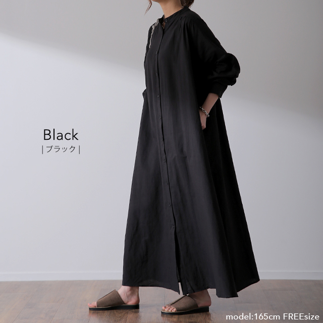 「 天然質感 」大人 リネン ワンピ ギャザー ワンピース レディース ロングワンピース ロングワンピ マキシ ロング シャツ シャツワンピース ロングシャツ 羽織 コットン ノーカラー 体型カバー 黒 大きいサイズ 綿 麻 HUG.U 冬 秋 秋新作