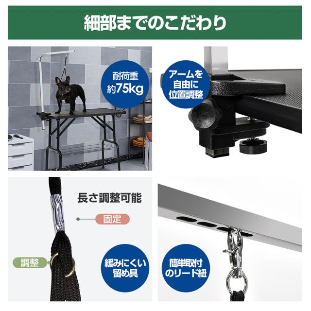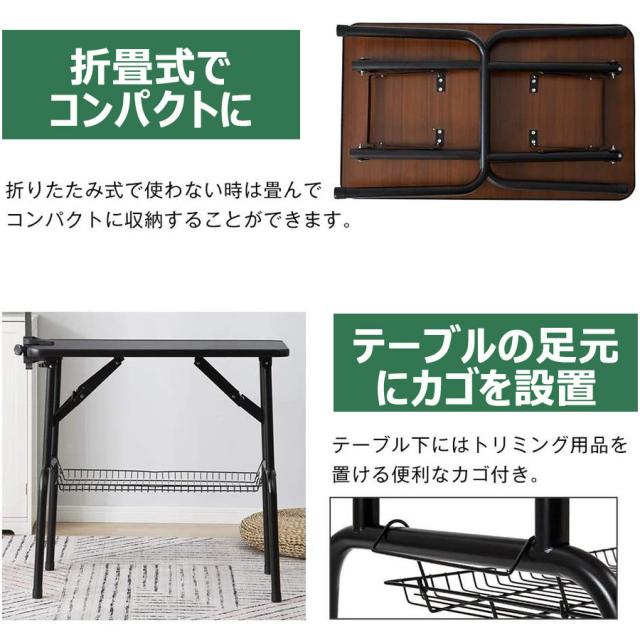 トリミングテーブル トリミング台 トリミング 折りたたみ 収納カゴ付 ペット用 シャンプー カット ブロー ブラッシング 爪切り 散髪台 耐荷重75kg 大中小型犬 滑りにくい