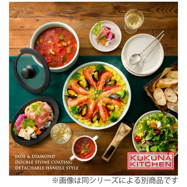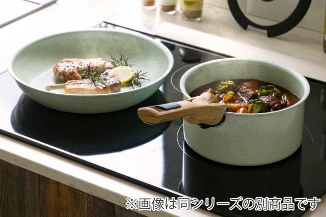 | 材質 | 本体:アルミニウム合金(内面・外面:セラミック塗膜加工)(翡翠石、ダイヤモンド粉末含有) 底部:ステンレス鋼 取っ手:フェノール樹脂 |