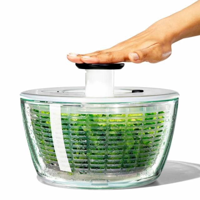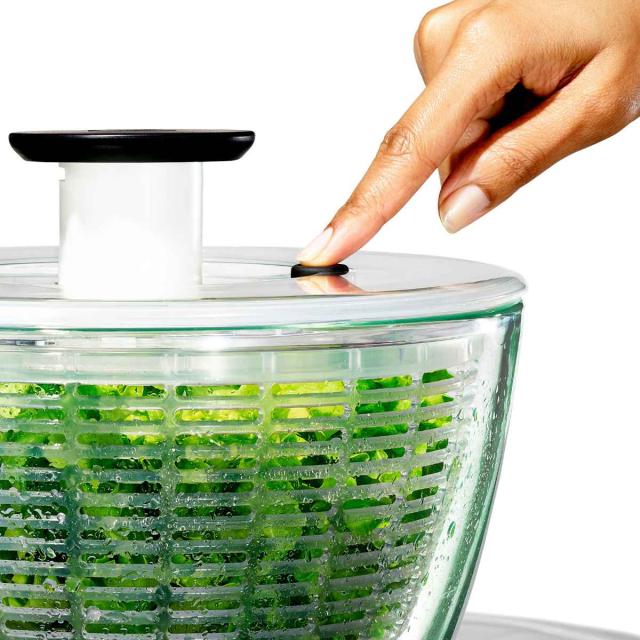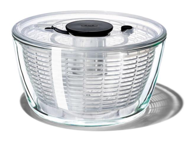 OXO ガラスサラダスピナー 食洗機対応 野菜水切り器 ( オクソー 野菜水切りかご スピナー 手動 回転式 ガラス製 滑り止め付き ボウル コランダー 下ごしらえ用品 キッチン便利グッズ キッチンツール )