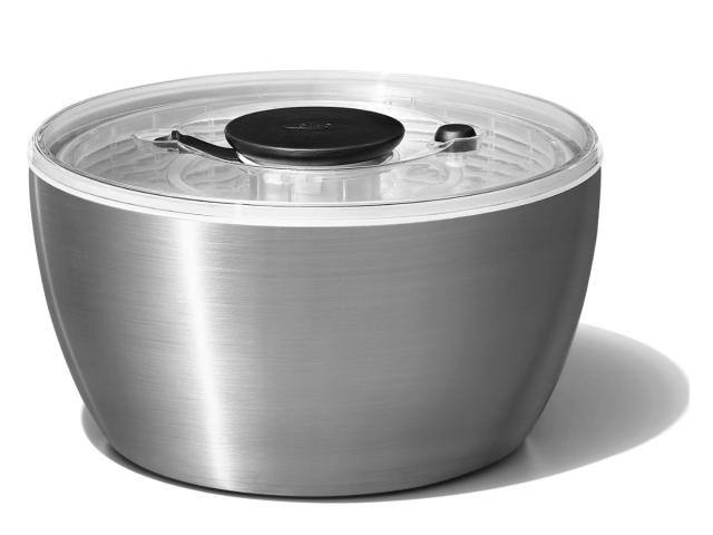 OXO ステンレスサラダスピナー 食洗機対応 野菜水切り器 ( オクソー 野菜水切りかご スピナー 手動 ステンレス製 回転式 滑り止め付き ボウル コランダー 下ごしらえ用品 キッチン便利グッズ キッチンツール )