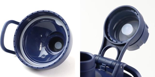 ネジ式のキャップを回し開けてもキャップは外れないので、閉める際にキャップはどこ!?なんてトラブルはありません。また、キャップを最後まで押し倒すとキャップロックがかかる設計なので、飲む時にボトルを傾けても固定されたままなので、邪魔にならず飲みやすいです。