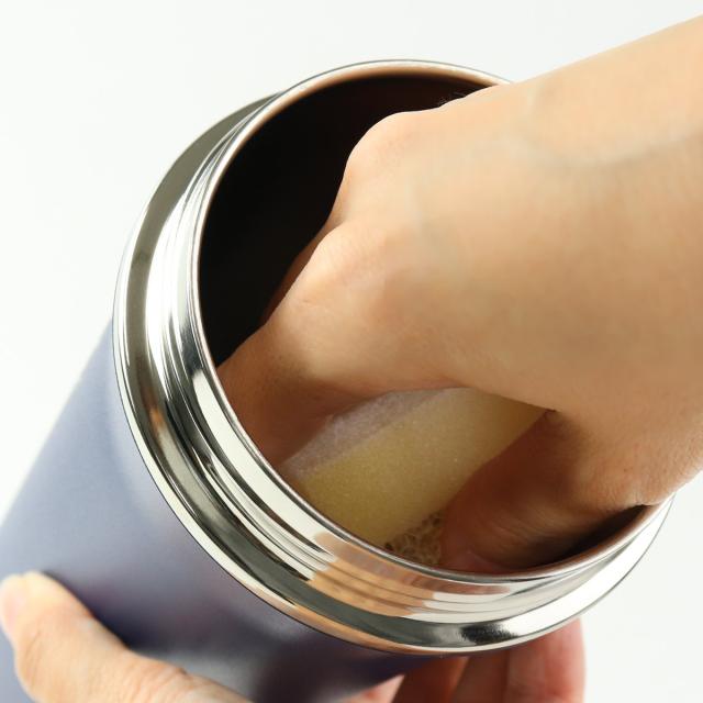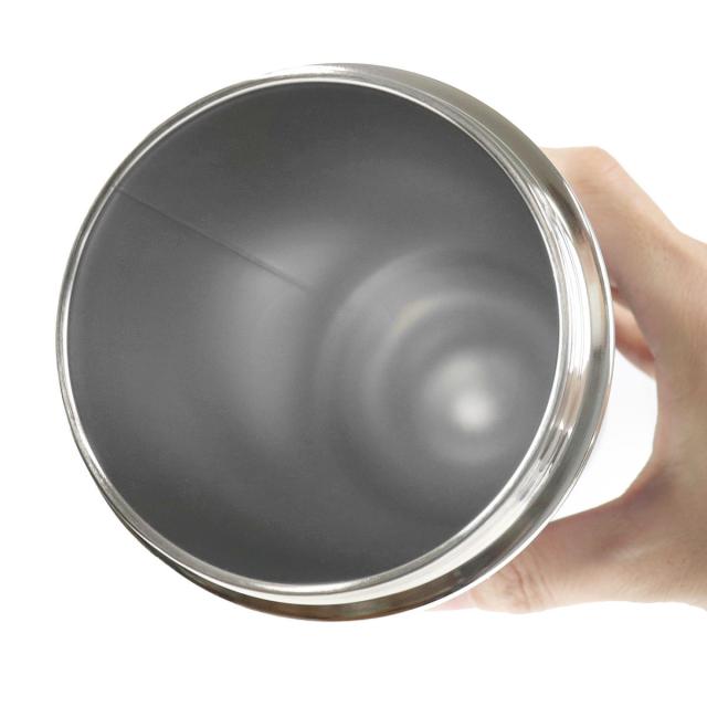 ボトル底は角が無い半円型構造です。プロテインなどの粉末が底にたまりにくいので、シェイカーとしてもおすすめです。一般的なプロテインのシェイカーはプラスチック製のものが多いですが、保冷機能に優れたスパウトタンブラーで持ち運べば長時間美味しい温度を保つことができます。