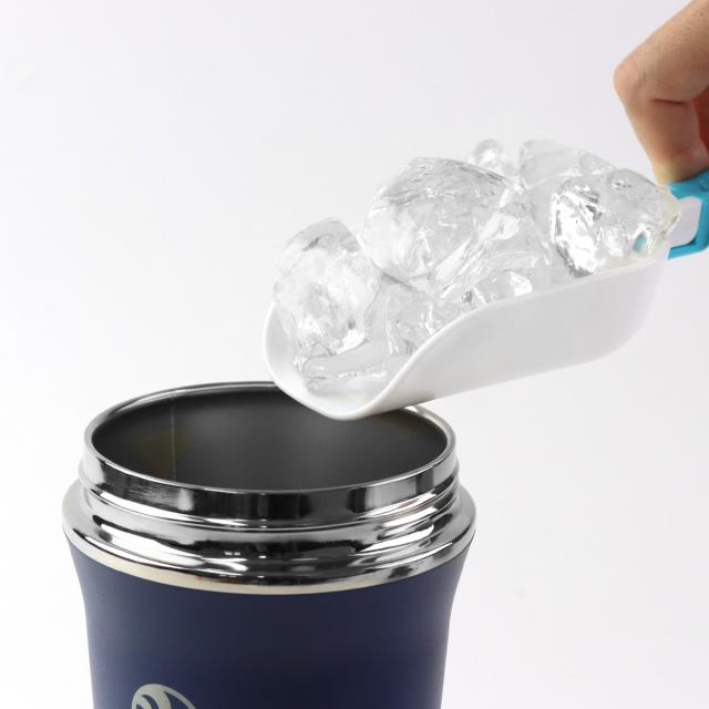 本体の口径サイズは約8.5cmと超幅広口径です。今まで水筒に氷を入れる時はボトルに入るスリムな氷をわざわざ作ったり、ひとつずつ摘まんで入れたりしていた方も多いのではないでしょうか。スパウトタンブラーは口径幅を気にすることなく、製氷機からすくってそのままガラガラと氷を入れることができます。