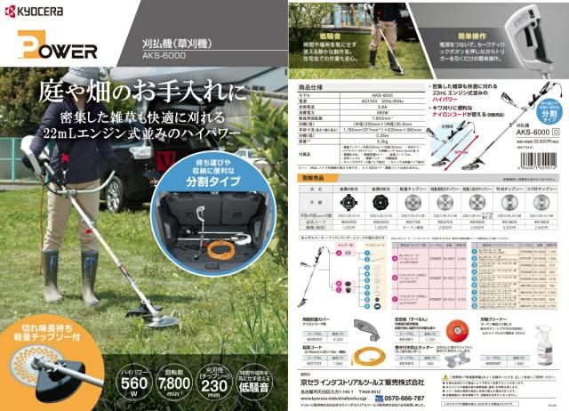 京セラ 刈払機 AKS-6000 草刈機 コンパクトになる分割タイプ 高速7,800回転 KYOCERA リョービ 大型製品