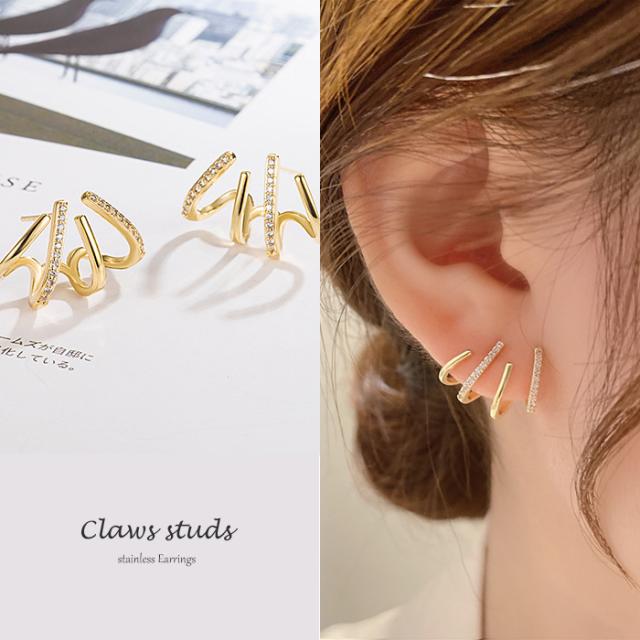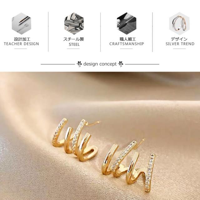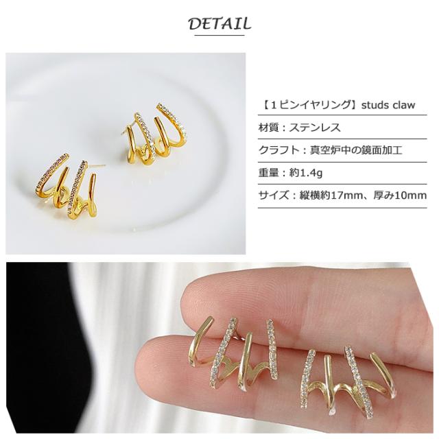 送料無料 両耳2個セット クロウスタンダードピアス ステンレス製 かわいい アクセサリー ゴールド おしゃれ ニッケルフリー 大人 フォーマル 金属アレルギー対応 18K シンプル ジュエリー トレンド おしゃれ 春夏用