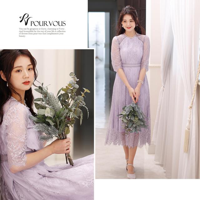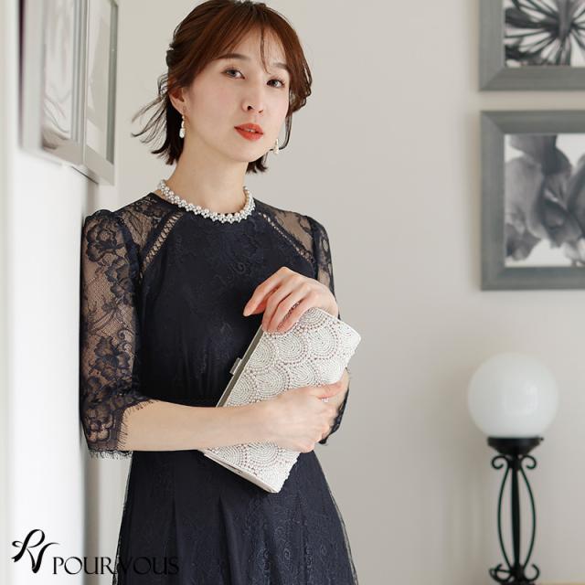 143221438 パーティードレス お呼ばれ 上品 顔合わせ フォーマルドレス 小柄 小さいサイズ フォーマル 服装 春 夏 秋 冬 ドレス 体型カバー 大きいサイズ ワンピース 結婚式 20代 30代 40代 150cm 低身長 ミセス 袖あり 袖付き 袖 総 レース 長袖 七分袖 ロング丈