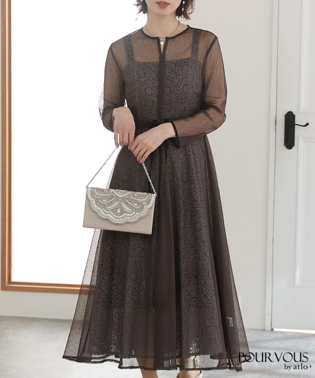 フラワージャガードチュールワンピース【899221125】20代・30代・40代・54代長袖・膝丈・セットアップ・スカート・体型カバー・ジャケット・テーラード・スーツ・大きいサイズなど・即日発送・送料無料結婚式・婚活・披露宴・顔合わせ・二次会・同窓会・お呼ばれ・食事会・謝恩会・親族・七五三・お宮参り・冠婚葬祭・弔事・女子会・デート・入学式・卒業式・入園式・卒園式・ママ・マタニティー・セレモニー・セレブ・パーティー