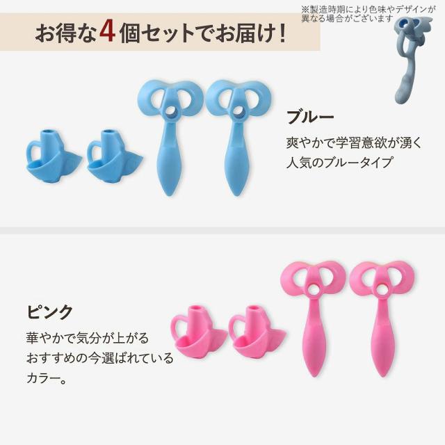 鉛筆 持ち方 矯正 4個セット お得 練習 持ちやすい 補助 簡単 小学校 入学 姿勢 グリップ 選べる2色 えんぴつ 学習 男の子 女の子 もちかた おすすめ 子供 青 ピンク 幼稚園 孫 学習 もちかた 握り方 鉛筆を正しく持つ 左右兼用 2種 上手 agesugi_snk