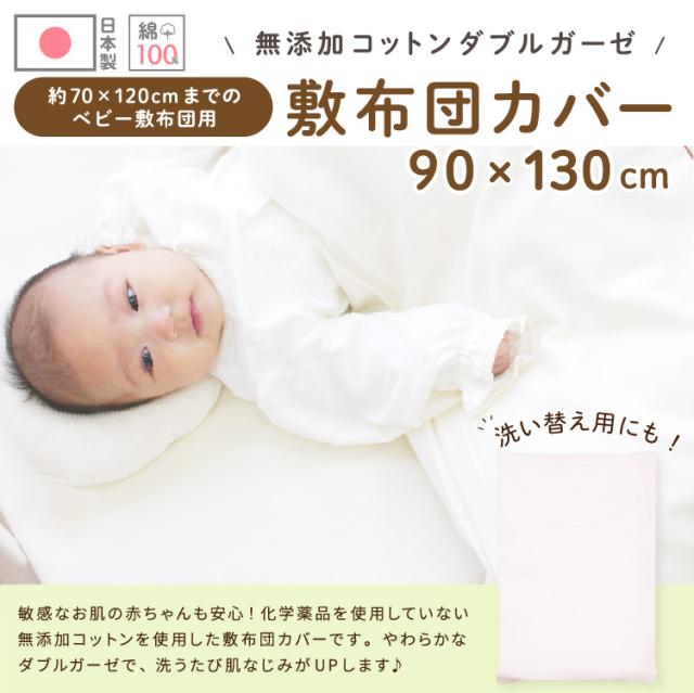 化学薬品不使用の無添加コットンダブルガーゼ生地を使用したベビー敷布団カバー。