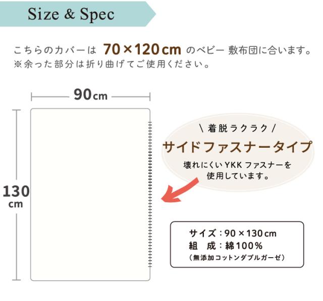 70×120cmまでのベビー敷布団用です。