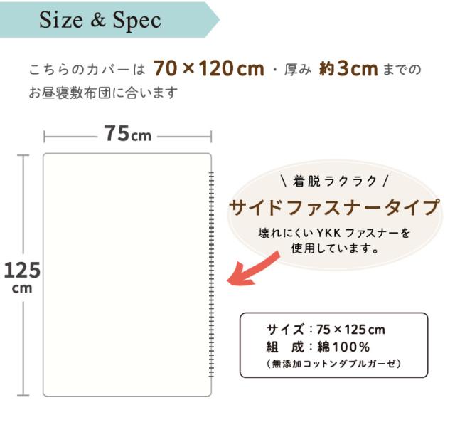 70×120cm・厚み約3cmまでのお昼寝敷布団用です。