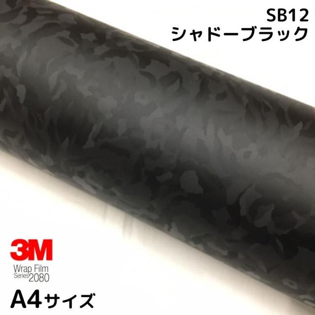 3Mラッピングシート A4サイズ シャドーブラック 2080シリーズSB12 艶消しカーラッピングフィルム 非ダイノック自動車用 1080後継モデル 迷彩調 サンプル