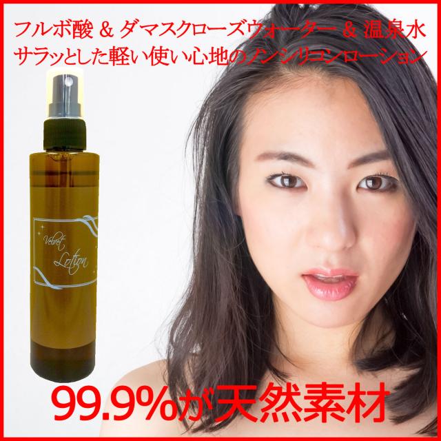 フルボ酸&ダマスクローズウォーター&温泉水のサラッとした軽い使い心地のノンシリコンローション。