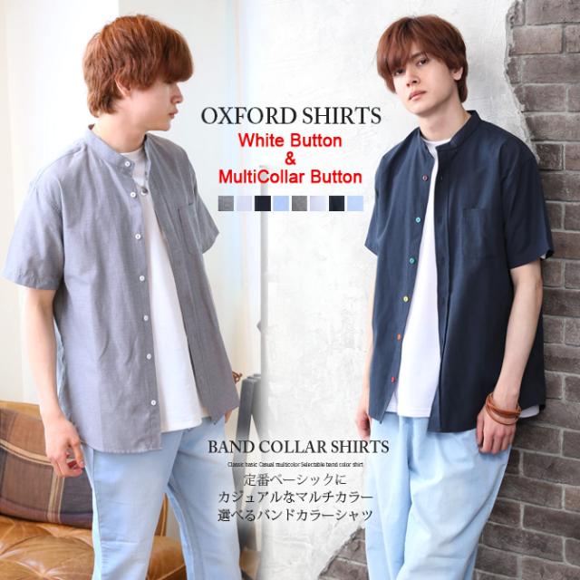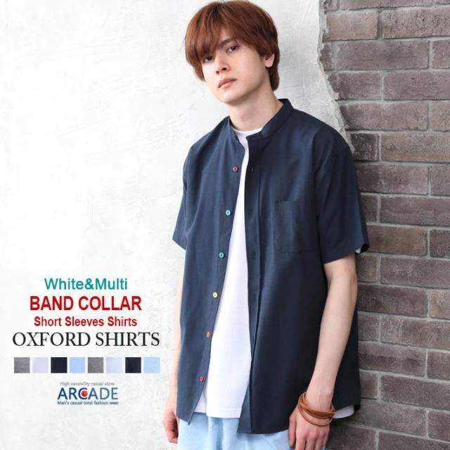 ■アイテム オックスフォードシャツ,メンズ,バンドカラーシャツ 半袖メンズシャツ