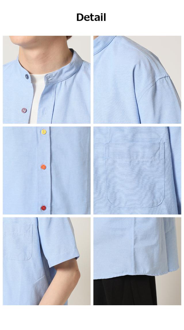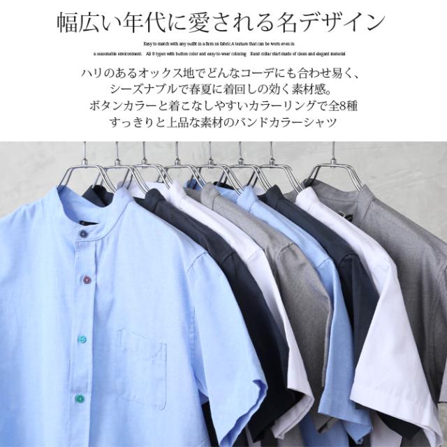 シャツ 半袖シャツ メンズ 春 夏 新作 バンドカラー 無地 オックスシャツ メンズファッション オックスフォードシャツ