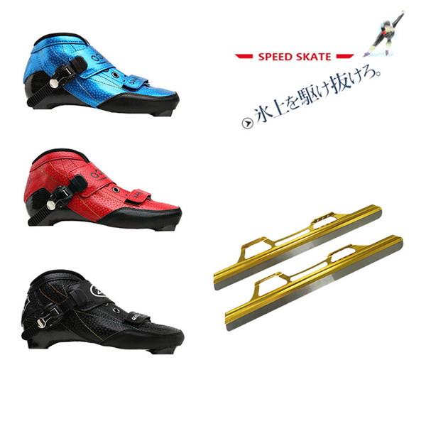 スピードスケート靴 ノーマル スケート 靴 マイクロファイバー カーボン構造 シューズ 固定式 エッジカバー付き 研磨済み ギフト プレゼント