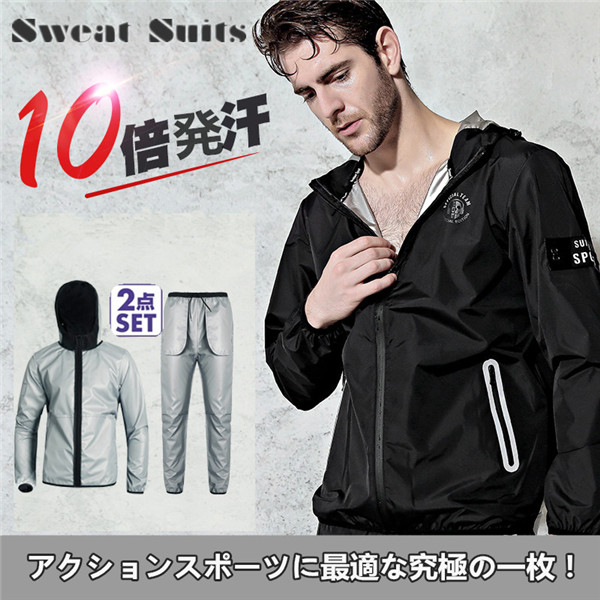 サウナスーツ メンズ 超発汗 運動着 脂肪燃焼 ダイエットウェア 上下セット スーツ ジョギング ウォーキング ボクシング 発汗 新陳代謝 大きいサイズ