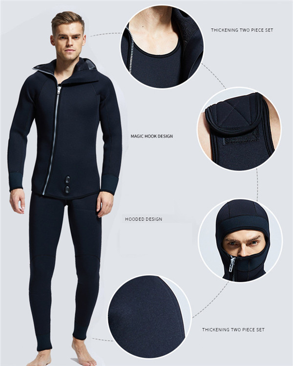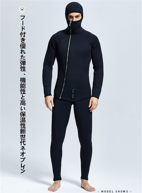 ウェットスーツ 5mm フード付き 2ピース ダイビング スピアフィッシング スキューバ フルスーツ マリンスポーツ シュノーケル 魚突き