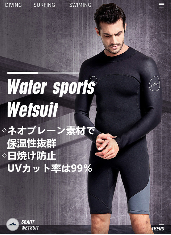 ウエットスーツ メンズ 水着 スプリング ダイビングスーツ ショーティー 2mm 長袖 スイムウエア マリンスポーツ