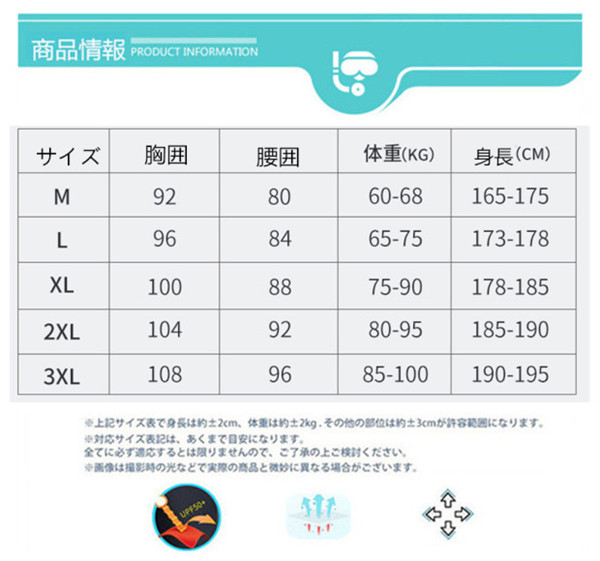 【商品特徴】◇保温効果だけではなく、日焼け対策やクラゲ対策にもなります。◇海水浴やプール、川でのスイミングはもちろん、サーフィン、カヌー、ダイビング、ヨットなどのアクティブなシーンでも大活躍。○【素 材】3mmストレッチネオプレーン、両面ナイロン○ストレッチネオプレンを使用、 運動性、保温性に優れて、幅広く利用できるオールシーズンワンピースです。○人間工学に基づくカッティングでお肌と ピッタリして浸水を有効抑え、体温を守ってくれます。【保管について】☆海から上がったら、なるべく早めに洗う。☆熱いお湯はNG、必ず水かぬるま湯で洗う。☆乾燥は直射日光を避け、細いハンガーは使用しない。しっかりと乾燥したら、なるべく早めに表面へ戻す。