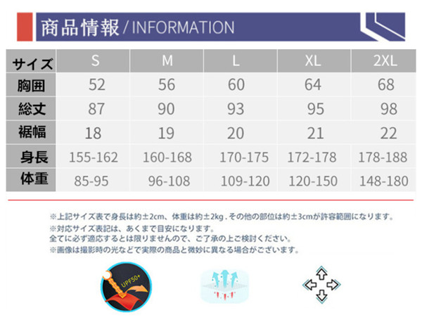 『商品特徴』: 【防寒性】ストレッチネオプレーンを採用しており、保温性、速乾性に優れて、 水中に入って、お肌とピッタリしているカッティングで浸水を有効抑え、 体温を守ってくれて、オールシーズンで適用できる。 【紫外線や怪我防止】UVカット保護指数はUPF50+より紫外線遮断率は99%以上可能。 ビーチや海底に多くの鋭い石や海の生き物による刺し傷やスレ傷、切れ傷などを防ぐ 。 【着心地良い】人間工学に基づいて設計され、3D裁断より人体とピッタリ合う、余すどこもなくフィットUP! 筋肉を引き締め、運動性をアップ!ストレッチ素材のため、着脱しやすい。 【耐久性抜群】強度を高めたフラットシーマー縫製を採用、縫製部の強度と耐久性ともに優れ, 内部で糸を折り返すため縫い目からの浸水を抑えることができ、また縫い目も平に仕上がることにより、肌触りが快適。 【用 途】サーフィン、シュノーケリング、ダイビング、水泳、ビーチバレボール、様々なマリンスポーツに適します。