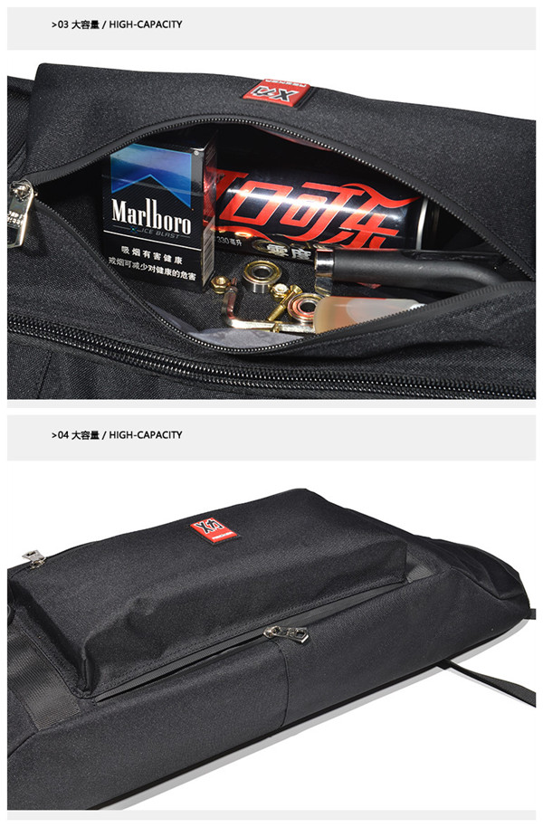 【商品特徴】◎持ち運びに便利 。◎軽量で防水性の高い生地を採用。◎しっかり収納力ポケットを装備。◎飽きのこないシンプル設計で男女兼用。◎こだわり設計で、愛用ボードの損傷を防く頑丈な構造。【商品スペック】■素 材:ナイロン/オックスフォード■生産国:中国製