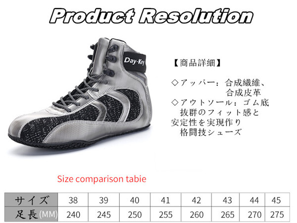 【商品特徴】○履きやすく、オリジナルで正統派のエクストリームスポーツ向けトレーニングシューズに特化○耐久性と柔軟性のある特殊合成アッパー素材を使用○抜群のフィット感と安定性を実現作り格闘技スニーカー○ハイカットにより足首までしっかり保護します○軽量で耐久性があり、通気性もよく快適に ご使用できます○ラバーソールで究極グリップを実現【素 材】◇アッパー:合成繊維、合成皮革◇アウトソール:ゴム底◎ボクシング、ウエイトリフティング、総合格闘技、ボディビル、レスリング、グラップリング、テコンドー、タエ&ボー、空手、クロスフィットトレーニング、ヨガ、フィットネス、ウォーキングなどあらゆる運動でご愛用いただけます。