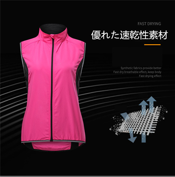 サイクリングベスト レディース ノースリーブ 袖なし 超薄型 防風 通気 サイクルウエア スポーツウェア 自転車ベスト