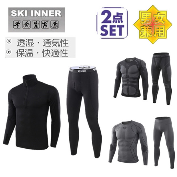 スノーウェア インナーシャツ 長袖 吸湿発熱 メンズ レディース インナーパンツ スキー スノボ 防寒 インナータイツ 上下セット