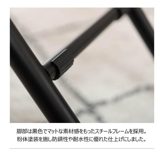 脚部は黒色でマットな素材感を持ったスチールフレームを採用。