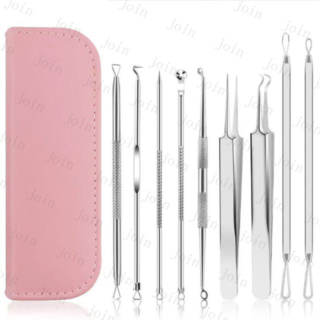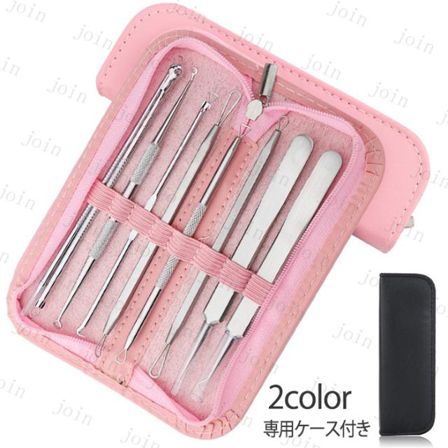 br127#ニキビ 毛穴ケア 9点セット 日本国内当日発送 ニキビケア 角栓 毛穴 黒ずみ 角質除去 角栓除去 ニキビ取り いちご鼻 フェイスケア 黒ニキビ 押し出す 毛抜き ピンセット 精密 ステンレス製