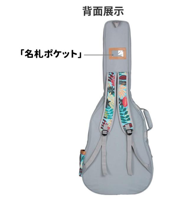 【商品特徴】◎肉厚で使い勝手の良いアコースティックギター用ギグケース◎肉厚なクッションにより愛用の楽器を衝撃から守ります。◎リュックタイプの両肩背負いが可能で、他の荷物が多い移動時にも便利。 手提げスタイルにも対応しております。◎収納ポケットが搭載されており、楽譜や教本、チューナーや予備弦などを収納可能。◎ヘッド側裏面には転倒防止フックが付いており、自宅やスタジオでの保管時も可能です。【商品スペック】◆素 材 厚手の600Dオックスフォード素材(防撥水効果) 中 部 13mmフォームパッドを採用(ギターを保護)◆内 寸 41インチ 110×43×13cm◆移動対応 2WAY/手提げ&肩掛けに対応