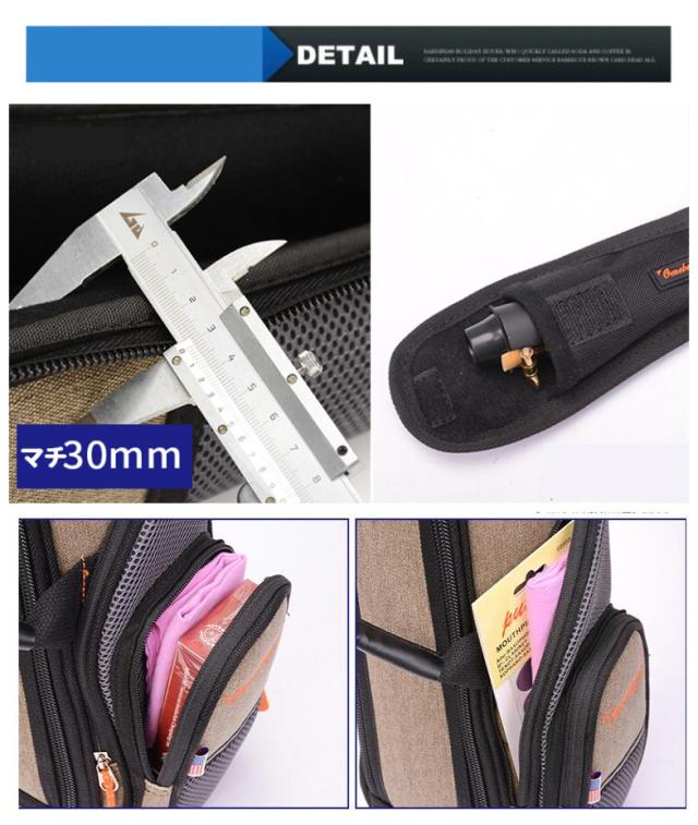 【商品特徴】◎ 外部には防水性に優れた外装素材。内部には厚手のパッド(クッション材)で楽器を保護◎ヘッド部分の収納もマチが多く小物がしっかり収納可能◎ヘッド部分に厚みがあり衝撃や運搬時の揺れを吸収◎下部の外部バンパーも広く取り付けられ衝撃や振動を和らげる◎クラリネット用ケースとしては驚異的な軽さで高級感あるルックスです【商品スペック】■ サイズ◇外寸 : 72*16*15cm◇内寸:66*13cm◇ポケット :22*10cm◇重量: 約 1.49キログラム◆移動対応 2WAY/手提げ&肩掛けに対応※画像はイメージです。楽器本体は付属しておりません。