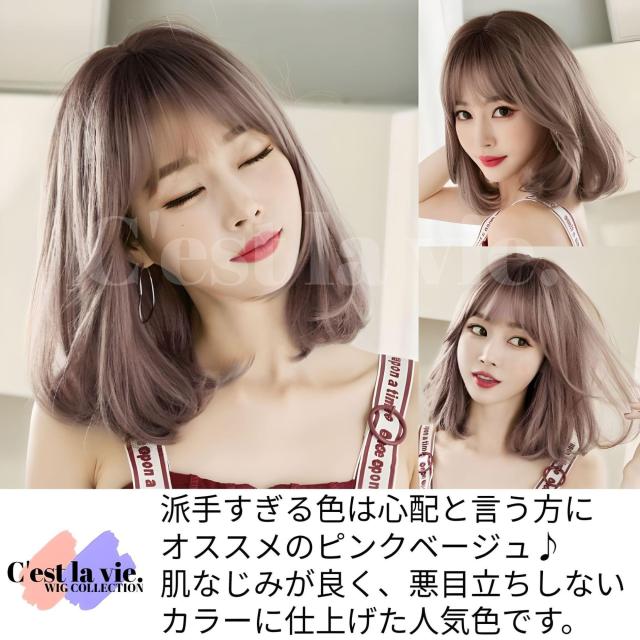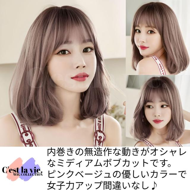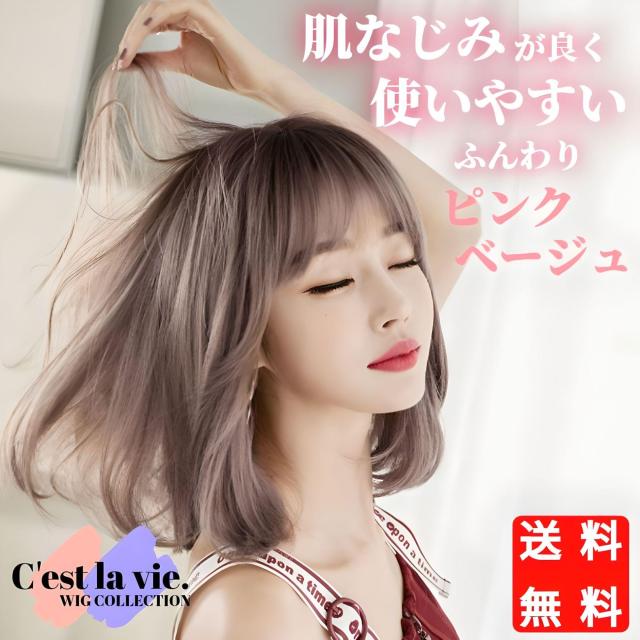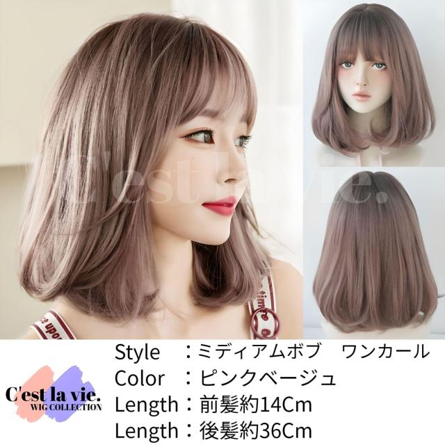ウィッグ フルウィッグ ミディアム ボブ ワンカール ピンク ベージュ 医療用 かつら 自然 バレない 即日出荷 送料無料