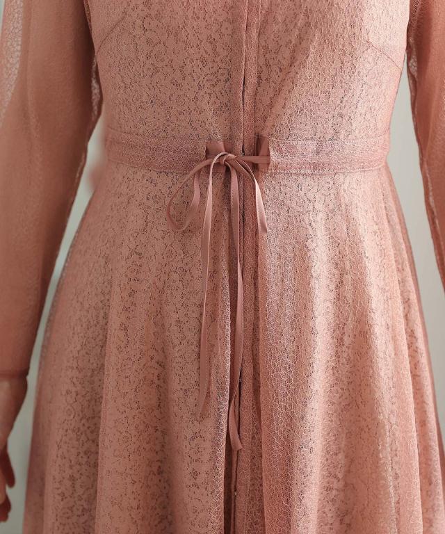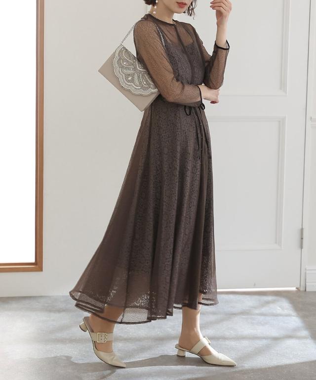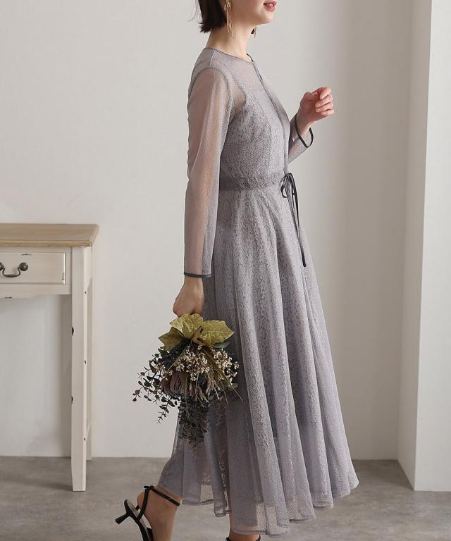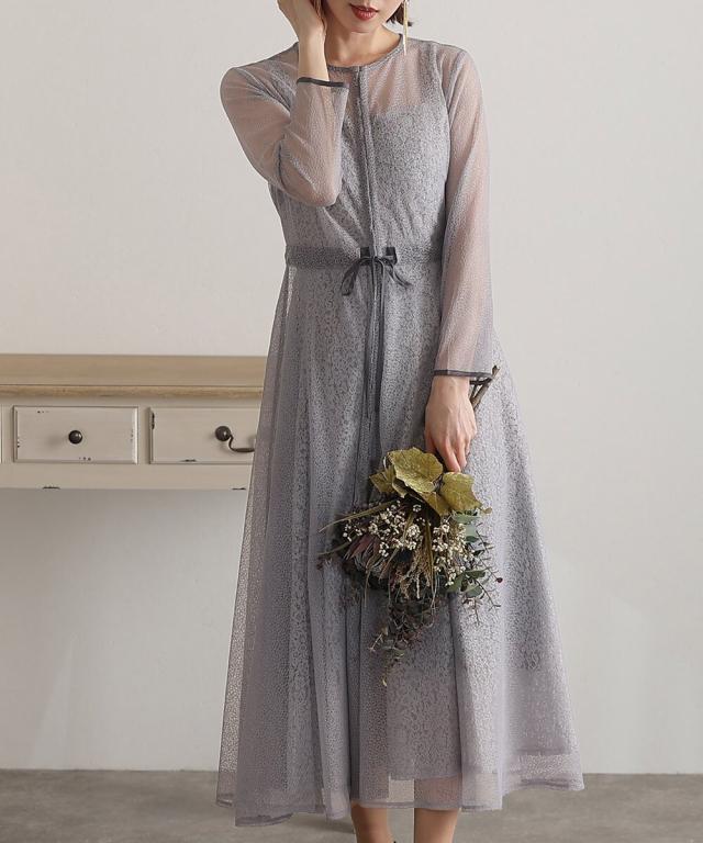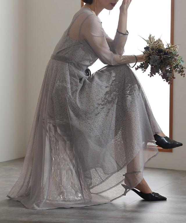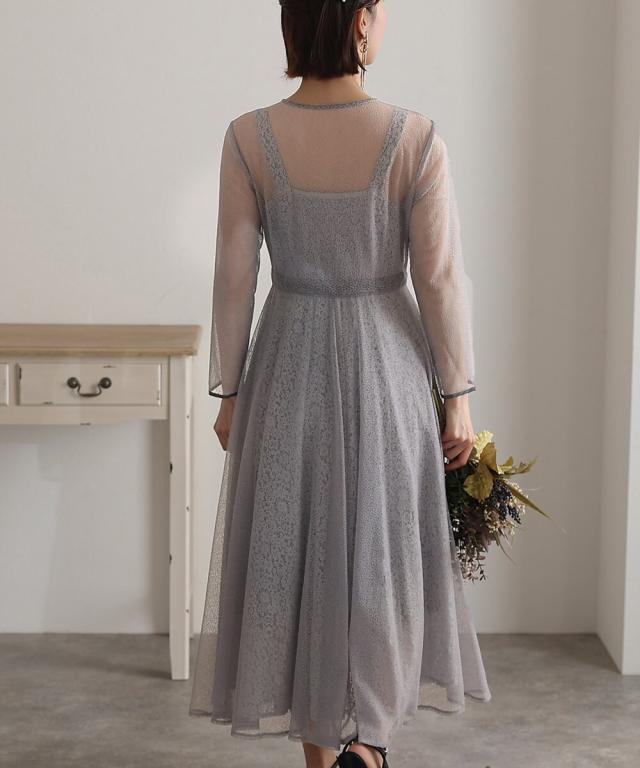 幾何学模様のチュールからチラッと覗く小花柄が可愛いワンピース。