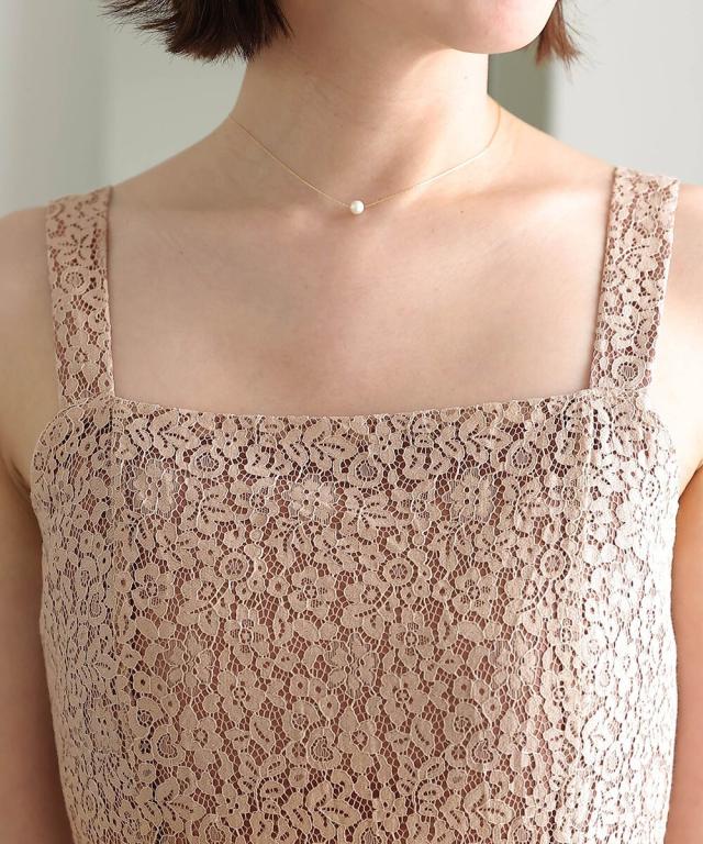 程よい肌みせのチュールが女性らしい柔らかな印象に。