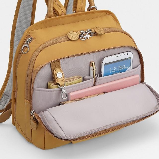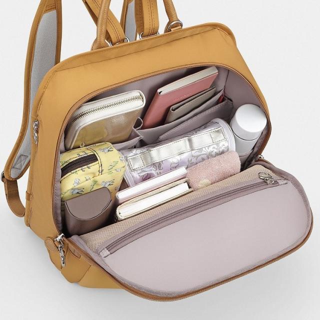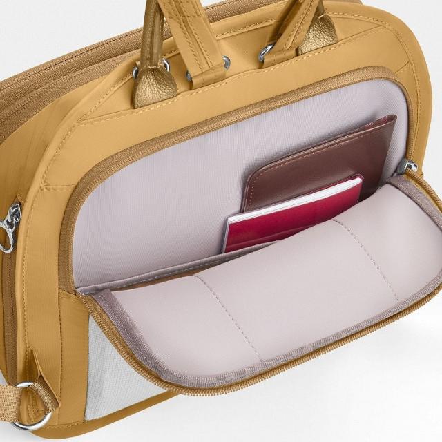 街歩きに必要な小物が収まる充実したポケットやセキュリティロックがポイント。