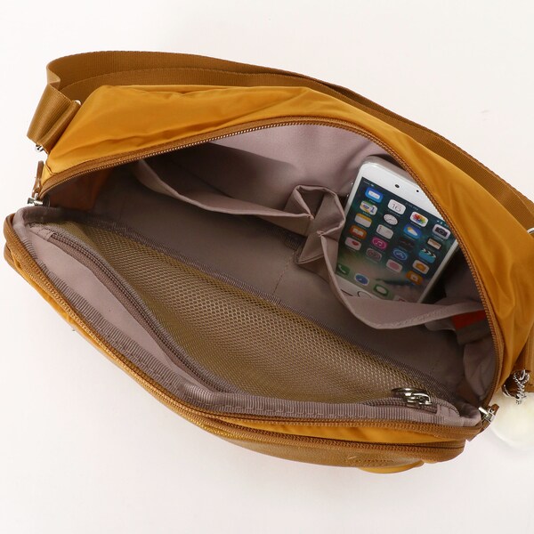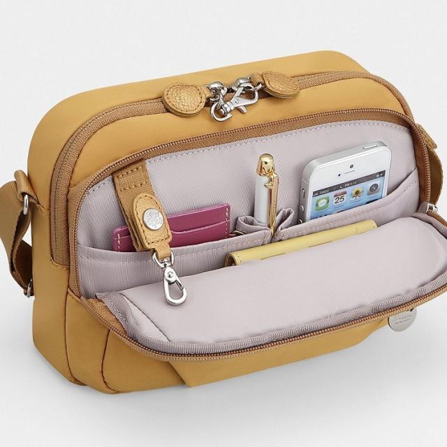 街歩きに必要な小物が収まる充実したポケットやセキュリティロックがポイント。