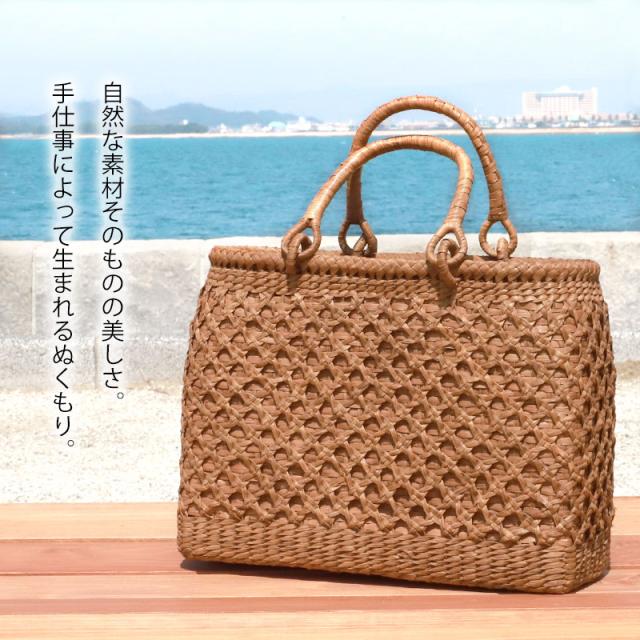 季節を問わず通年使え、着物にもカジュアルにも似合います。山葡萄 かごバッグ 1年保証付き 内布付き 山ぶどう やまぶどう 蔓 天然素材 カゴバッグ 籠バッグ バスケット レディース 大人 おしゃれ 二重六ツ目編み リングハンドル 手提げ B5 ハンドメイド 手作り 母の日